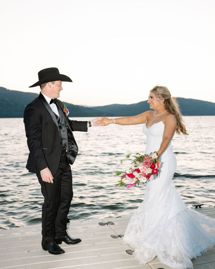 Loren wore blue Tecova boots (branded, of course) for her something blue, which was such a fun and meaningful detail. Her style was relaxed yet elevated—Montana chic in the best way. Their ceremony was intimate, heartfelt, and wrapped in the peaceful stillness of the mountain air.